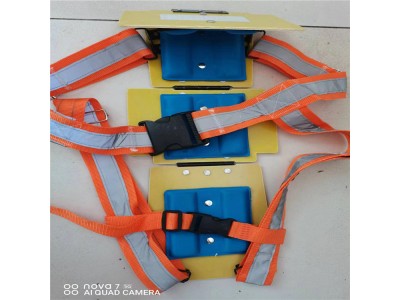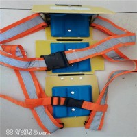背带采用2.5cm加厚橙色织带,舒适。胸前加两排横档插扣,利于固定背甲贴身作业,减少脱落。制作板材的选材严格,工艺好且美观的板材制作。没块板材都经过打磨。背带与板材链接采用厚铁制链接件,连接件设计合理,可适当转动,既坚固又舒适。加贴反光条,昏暗的灯光下也可以看清。